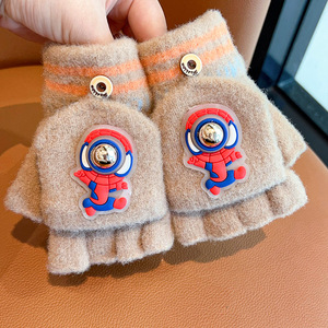冬用子供ニット手袋 男の子用 指なし防寒手袋 中学生 小学生 書き物用 防寒 半指・全指