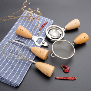 インスタ风可爱い笑颜木制ハンドルステンレス食器8点セット洋食ステーキナイフフォークスプーンセット