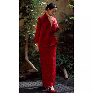 新中国式チャイナドレス敬酒服2024新型レトロ国風結婚ドレス婚約ワンピース長袖春秋