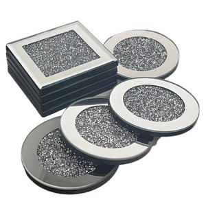 クロスボーダー専用のドリルガラスのコースターのダイヤモンドは鏡面のコースターの正方形のコースターの装飾用品を充填します。