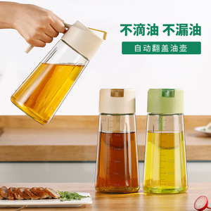 ガラスのオイルポットは自動的に開閉します。油漏れ防止家庭用食品級キッチン調味料瓶の醤油酢のオイルポットの瓶です。