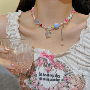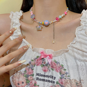 甘いクールなカラーのドーパミンのネックレスの女性のキャンディー色の星の長いタイプのフリンジは鎖の鎖の少女のかわいい首の鎖をつなぎ合わせます。