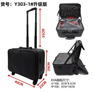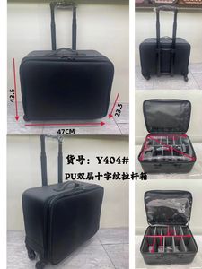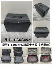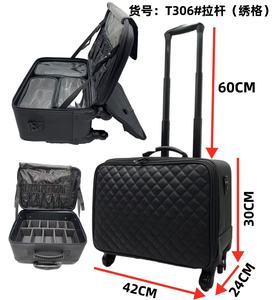 T306#大型PU二層トロリーケース(刺繍グリッド)