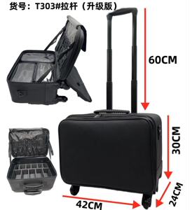 プロのトロリーバッグ、高さのあるメイクアップアーティストオックスフォード布化粧品ケース、大容量の旅行用ポータブルユニバーサルホイール、多層パーティション
