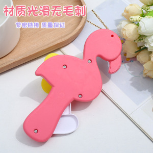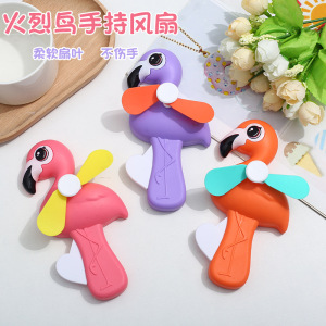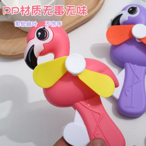 手圧扇風機の子供は小さい扇風機の漫画のフラミンゴの動物のおもちゃを持って携帯します。