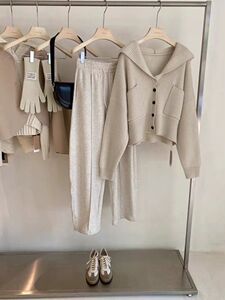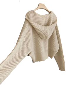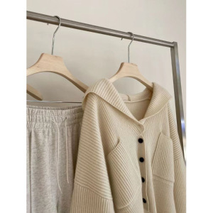 セーターの女性2023秋冬の日本の怠惰なレトロな大衆感のカジュアルなセットの帽子のセーターのニットのカーディガンのコート