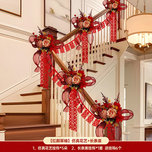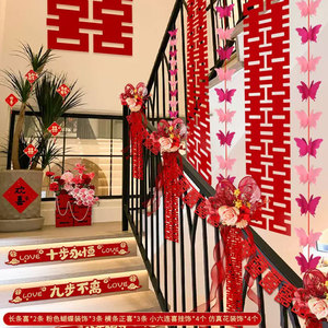 結婚階段手すり装飾結婚部屋配置セット結婚式女性寝室喜字花ウェディング装飾用品