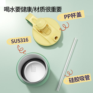 高品質保温カップ カスタム316食品グレード 二層構造蓋付き ダブルストロー付き水筒 大容量 妊婦さんや寝たきりの方にも使えるカップ