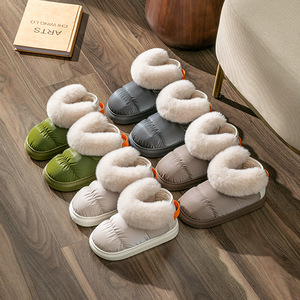 韓国版シンプルなバッグと男女綿靴秋冬家室内保温カップルかわいい毛パイルスリッパ冬