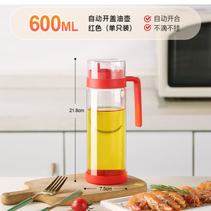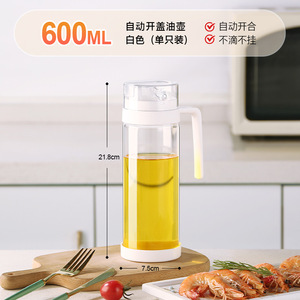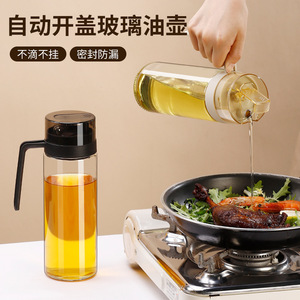 自動開閉式ガラス製オイルポット、油がこびりつかない、醤油・酢の分注ボトル、オイルポット、調味料ボトル、キッチン用品
