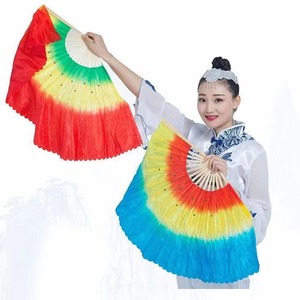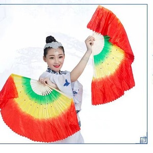 一尺の扇骨が20の赤と黄と青の右手に漂っています。