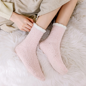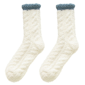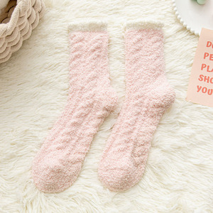 麻花模様の半毛起毛サンゴフリースソックス、おしゃれなミドル丈、厚手、睡眠用、保温、タオルソックス、産後ソックス、毛足の長いソックス