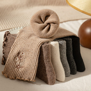 靴下の女性の木の耳元の刺繍の小さい花の中筒の靴下のレトロな色の厚い保温の靴下の純色の百合のぬいぐるみの靴下