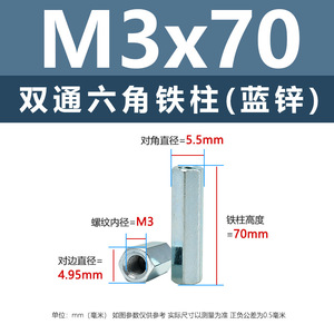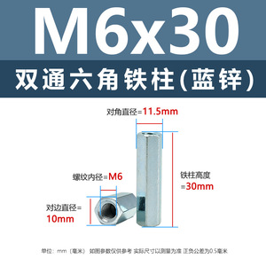 ニッケルメッキ内ねじ二重通六角鉄柱M3-M8外六角隔離支持柱青亜鉛カメラ間隔柱