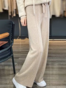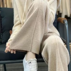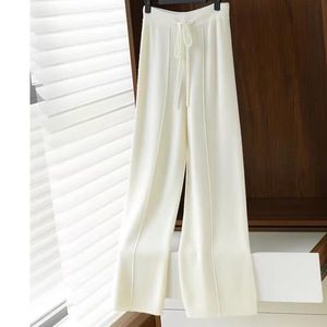 秋冬の新型ウールニットのワイドパンツの女性は、ゆったりとしたカジュアルな感じのズボンを着て、腰が高くて痩せています。