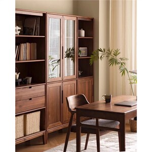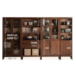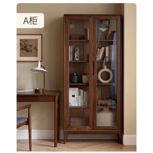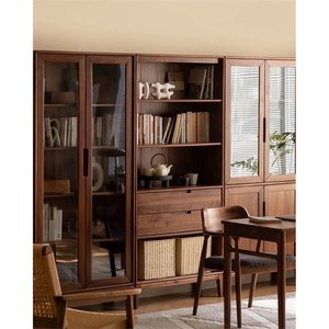 北欧黒胡桃木全実木本棚セット現代シンプル展示棚本棚書斎ガラス扉ロッカー