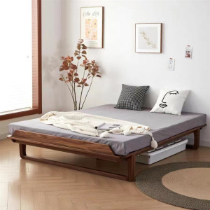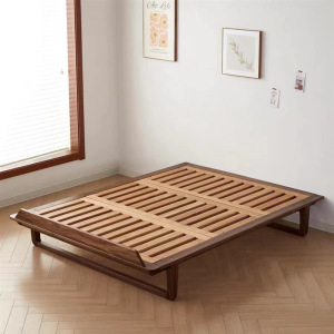 北欧黒胡桃木実木ベッド日本式畳低ベッド桜木シンプル現代背もたれなし浮上ベッド