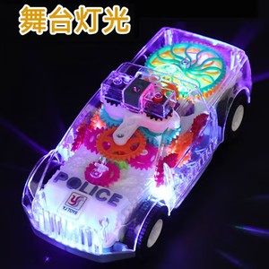 新型電動万能透明歯車パトカー自慢照明音楽玩具警察車露店卸売り