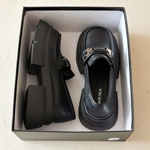 厚底ローファー レディース 2WAY 2025年秋新作 イギリス風 レトロ 多用途 シンプル ラウンドトゥ 浅口シューズ