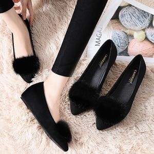 ヨーロッパ駅のベルベットミンクの毛羽靴の女性秋冬の先に豆靴の女性靴の平底坂と綿靴が高くなった