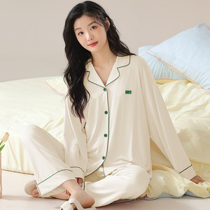 パジャマ女性の秋と冬の長袖綿韓国スタイルシンプルな無地カーディガンカジュアル春秋ホームウェアセット