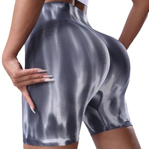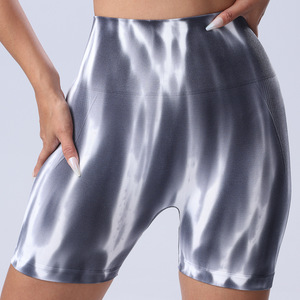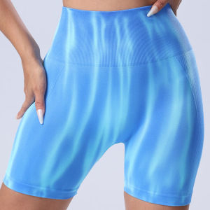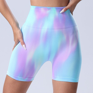 シームレスなカラフルなオーロラヨガショーツ、女性用ハイウエストヒップアップと腹部引き締めグラデーションスポーツフィットネスパンツ、吸湿発散性