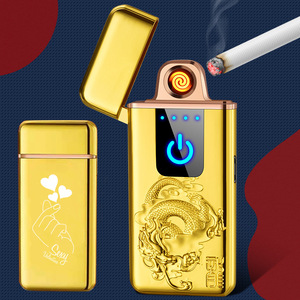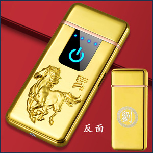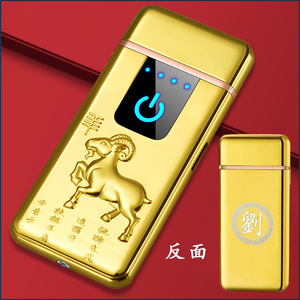 浮き彫りの金色十二支チャージ式ライター、防風、耐久性、指紋センサー、静音、彼氏へのプレゼント