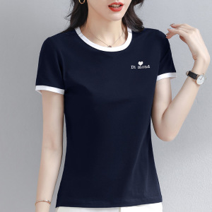 夏カジュアル白半袖 Tシャツ女性のカラーブロックトップス 2025 夏の新スリムウエスト美しい Tシャツ