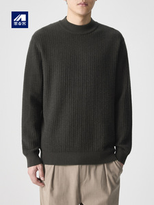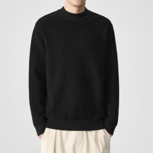 モマイケ 無地ハーフタートルネックセーター メンズ 2024年冬モデル ピンストライプテクスチャ メンズニットウェア 20541