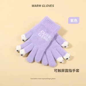 半分の指でカバーする手袋冬のウールのニットの手袋のタッチパネルを厚くして保温します。