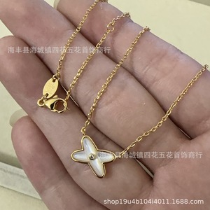 高バージョンv金尚美クロス天然白貝母ネックレス女性x型アルファベットペンダント鎖骨メーカー卸売り生放送