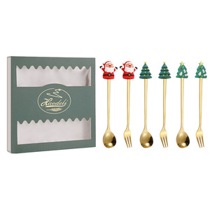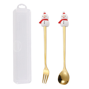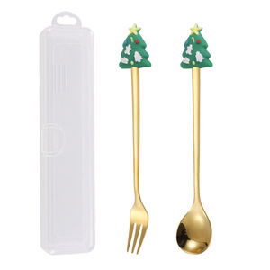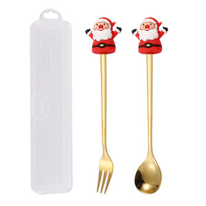 クリスマススプーンセット クリスマス食器ギフト2点セット デザートスプーンとフォーク サンタクロースとトナカイのフィギュア付きスプーン