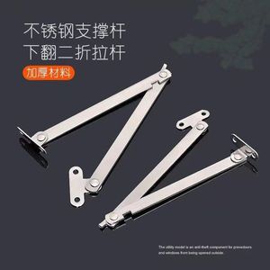 ステンレスの二つ折りレバーを厚くして、ベッドの上の食器棚のドアを畳んで支えます。