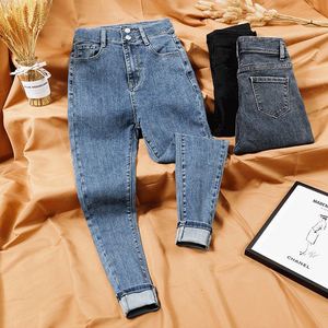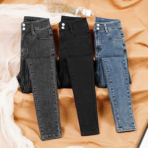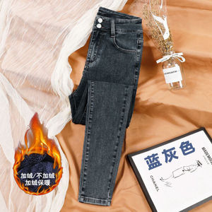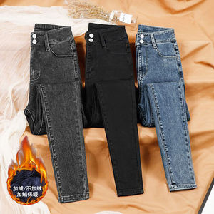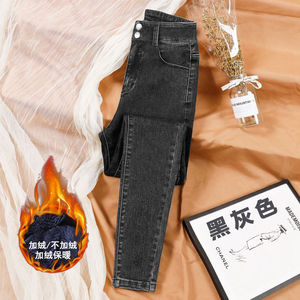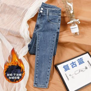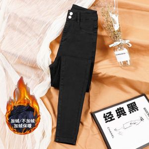 ベルベットの厚い足のジーンズの女性2023秋冬の背の高い腰がやせて見えるガードル鉛筆のズボン