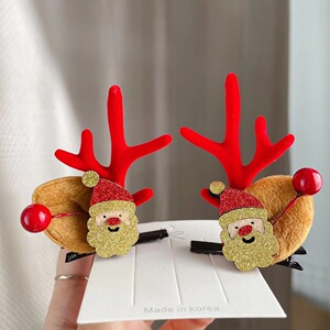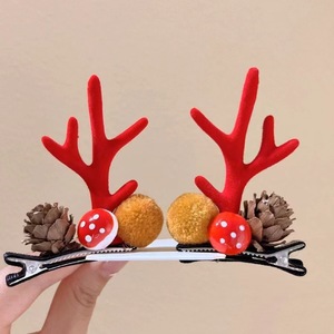 クリスマスの頭飾り森系ヘラジカのヘアピンが可愛い子供の鹿の角の耳のヘアピンのカチューシャのアクセサリーの小さいクリップの髪飾りです。