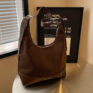 大容量バッグ女性秋冬百合2023新型レトロシングル肩斜め掛けバケツバッグ女性通勤バッグ