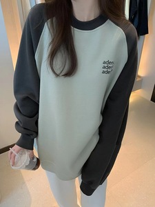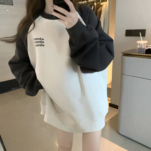 即墨のもとの工場のドイツの秋のアルファベットの刺繍の韓国版は色にぶつかって肩の袖の丸首のゆったりしている加毛の女性をつなぎ合わせます。