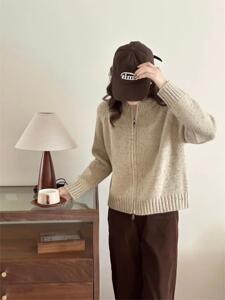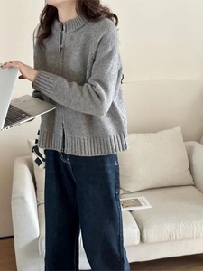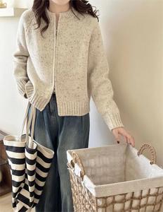 花の糸の雑色の丸首の短いセーターのカーディガンの女性の秋の婦人服の新型の復古の双ファスナーのニットはやせているコートを現します。
