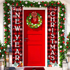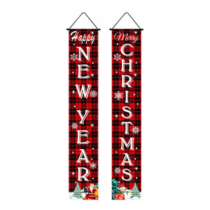 新型アマゾンクリスマス対聯のれん赤い格子装飾クリスマス対聯temu起爆クリスマス対聯