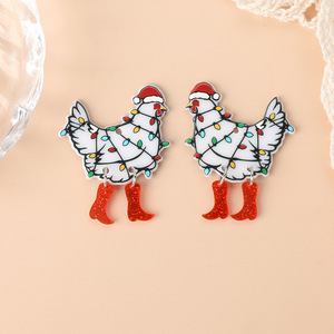 クロスボーダーの熱い販売の両面のアクリルのアイデアのクリスマスのニワトリの耳飾りのネックレスのキーホルダーのペンダントのニワトリの表裏のようです。
