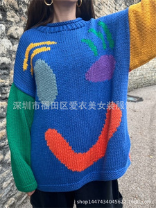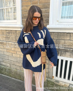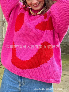 2025秋冬 欧米アマゾンeBay越境販売 ジャカード織り配色プルオーバーニットセーター レディース 5色展開