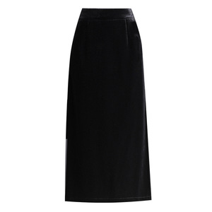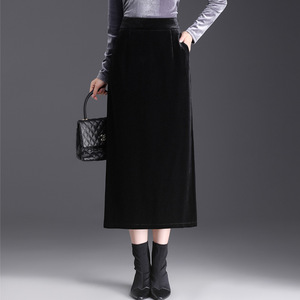 金糸ベルベットポケット付きストレートタイトスカート レディース 2025秋冬新作 上品なワンステップスカート 着痩せ効果のあるミディアム丈スカート