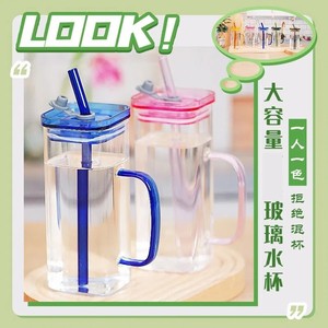 カラーハンドル単層ガラスストローカップ家庭用大容量ストローと蓋付き飲料花茶飲料単層カップ