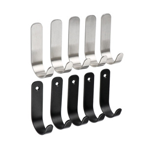 浴室用衣類ハンガー ステンレス製 ブラックフック ダブルフック キッチン/トイレ/ドア後ろ用 金属製収納 ドア後ろ収納