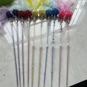 猫のおもちゃは猫の棒の長い棒のワイヤーの羽の鈴をからかって猫の棒を交換します。