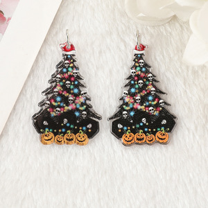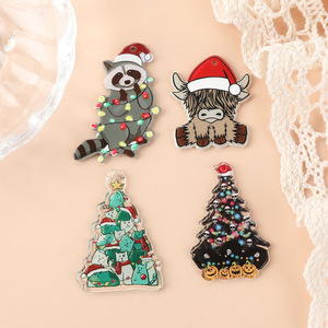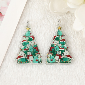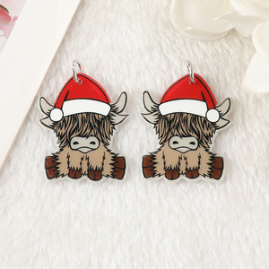 クロスボーダー両面アクリルクリスマス牛クリスマスツリー耳飾りネックレスキーホルダー