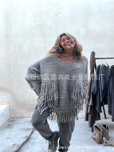 2023秋冬欧米アマゾンeBayクロスボーダー新型女装ファッションvネックゆるいフリンジニットセーター3色