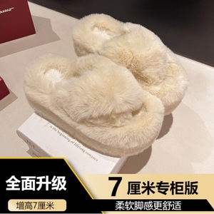 高級感のある厚底7CM増高ファー付きスリッパ レディース 外履き 2025春秋新作 オフィス/自宅用コットンスリッパ