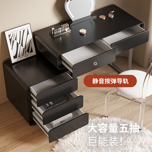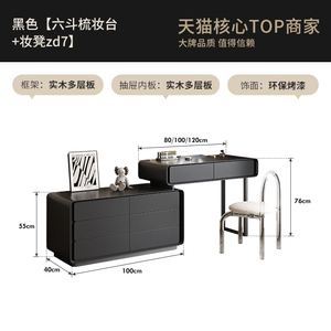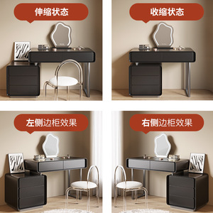 黒のドレッサー、三段チェスト一体型化粧台、寝室用ライトラグジュアリー無垢材塗装伸縮式化粧台、ライトラグジュアリースタイル