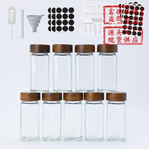 4オンスアカシア木蓋角型散布瓶調味料瓶セット120ml焼きクミン胡椒粉ガラス香料瓶